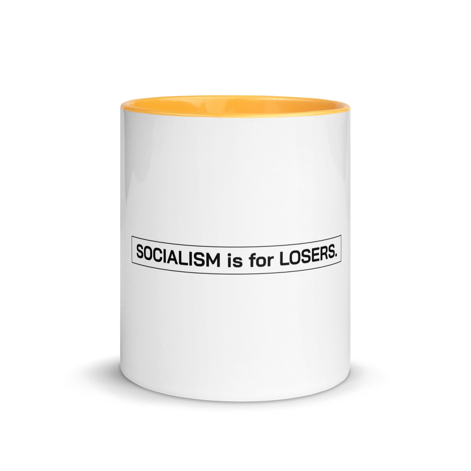 This sturdy White Ceramic Mug has a colorful inside and a white print area all around the mug. Choose between vibrant color options, create your own unique designs, and start selling the mug to your customers!. Ceramic. 11 oz mug dimensions: 3. 79″ (9. 6 cm) in height, 3. 25″ (8. 3 cm) in diameter. 15 oz mug dimensions: 4. 69″ (11. 9 cm) in height, 3. 35″ (8. 5 cm) in diameter. Lead and BPA-free material.  . White print area. Colored rim, inside, and handle. Dishwasher and microwave safe. Blank product sourced from China. This product is made on demand. No minimums. Disclaimer: This product is not suitable for children under 18 months. Depending on the light setting, the handle color of the White Ceramic Mug in Black may appear blue.